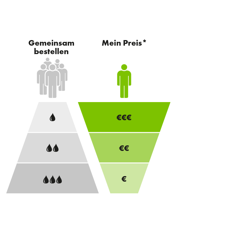 Im Rahmen der Aktion PowerBuy bündelt EnergieDirect alle Bestellungen innerhalb eines bestimmten regionalen Gebiets, die innerhalb eines definierten Aktionszeitraums stattfinden und gewährt darauf basierend einen Mengenrabatt, der mit dem günstigsten Tagespreis des Aktionszeitraums kombiniert wird. Dabei gelten die allgemeinen Geschäftsbedingungen unseres Unternehmens in ihrer jeweils aktuellen Fassung. PowerBuy kann nur für Lieferungen in teilnehmenden Regionen Österreichs in Anspruch genommen werden.