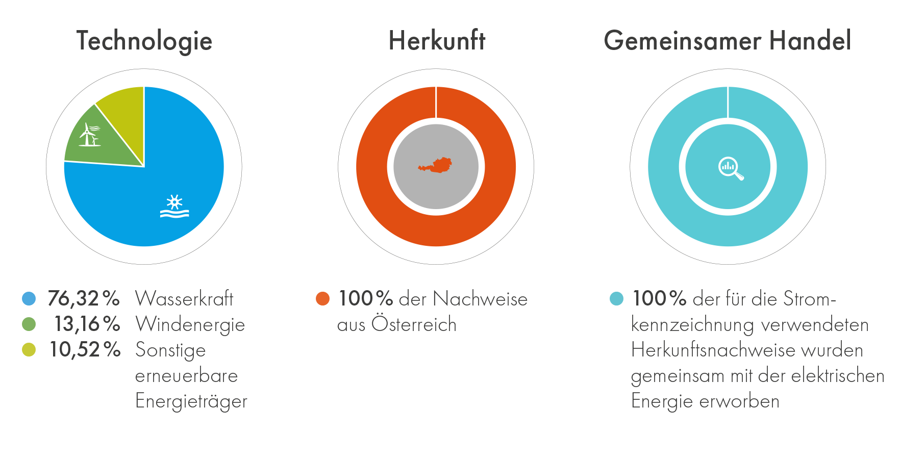 Auf dieser Seite ist die Stromkennzeichnung ersichtlich – mit transparenter Aufschlüsselung der Herkunft des nachhaltigen Stroms aus Österreich.