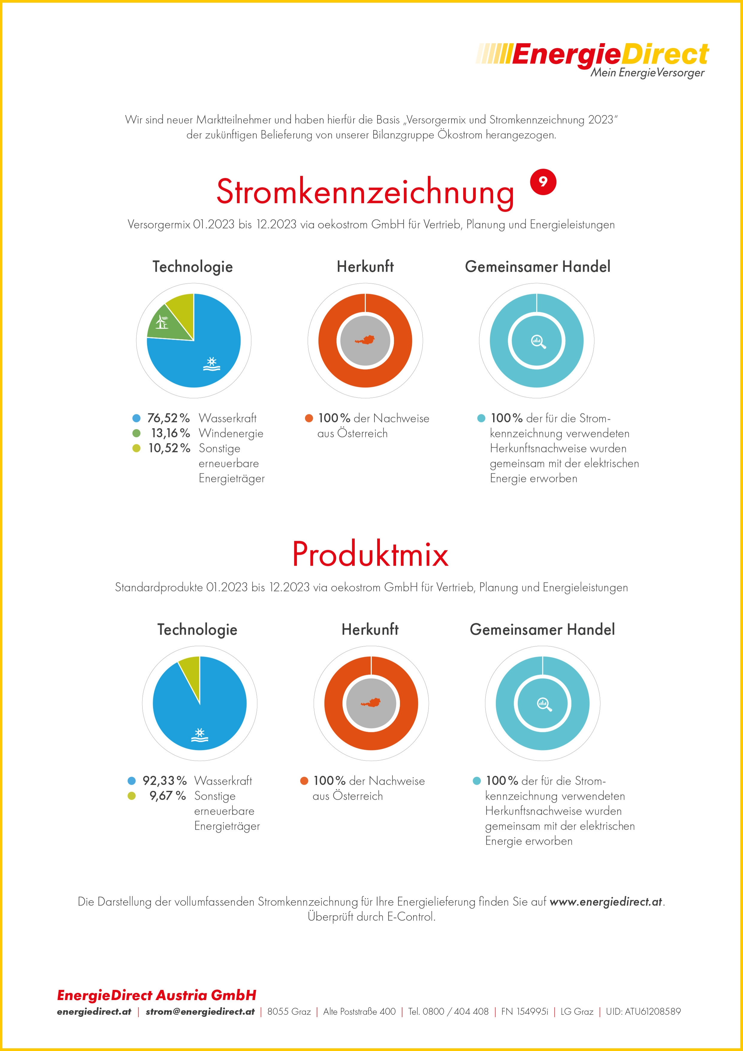 (9) Stromkennzeichnung: Hier können Sie herauslesen, aus welcher Quelle Ihr Strom stammt.