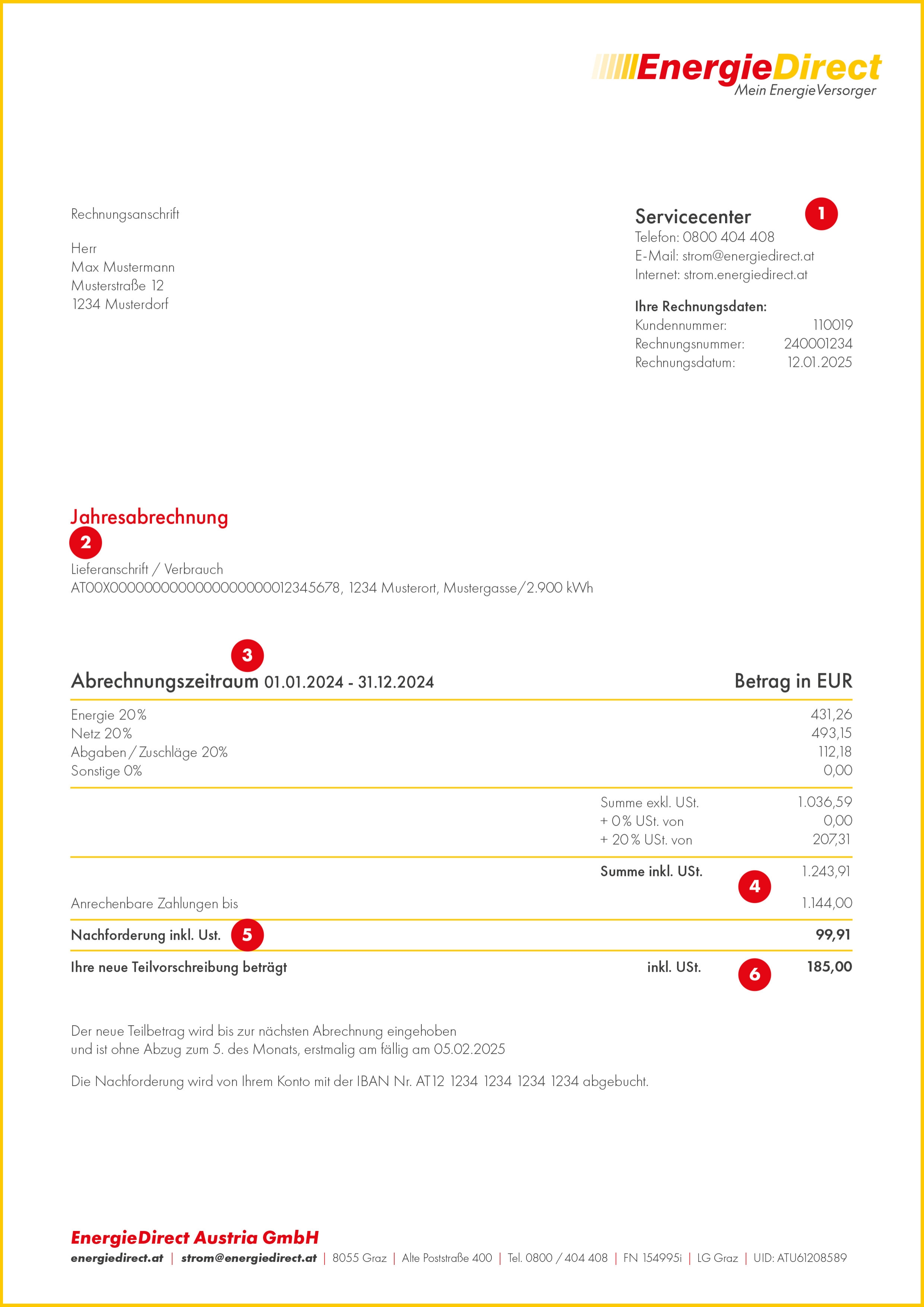 Daraus ergibt sich unter anderem der nächste Punkt der Abrechnung, nämlich Ihr (6) neuer Teilbetrag.
