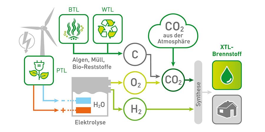 Die Forschung arbeitet intensiv an der Herstellung nicht-fossiler Flüssigbrennstoffe. Wir möchten Ihnen einen Überblick geben, was genau unter den Abkürzungen PTL, BTL, WTL und XTL verstanden wird:
